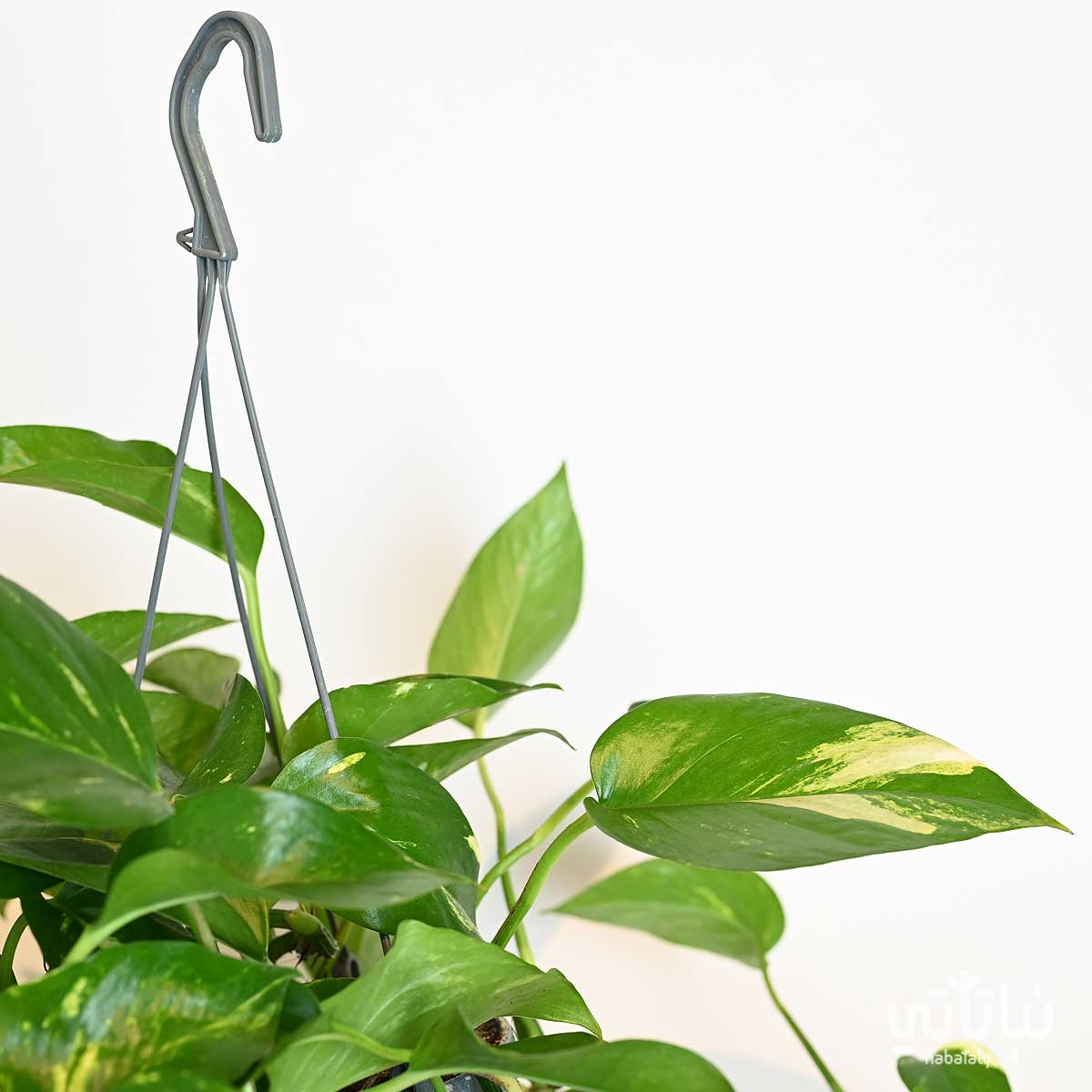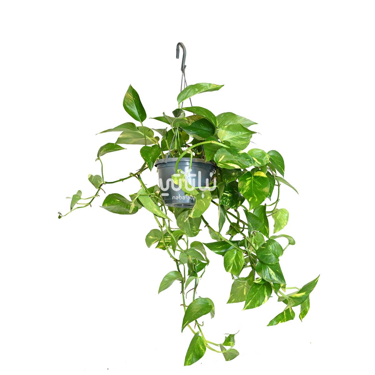 نبتة بوتس بأوراق كثيفة في حوض معلق من البلاستيك ، تعتبر البوتس من النباتات الداخلية القوية والناجحة جداً، تتميز بلون جميل وتمتد بشكل سريع نسبياً ولاتحتاج للكثير من العناية، يمكن وضعها في دورات المياة أو في غرف الجلوس أو المكاتب.