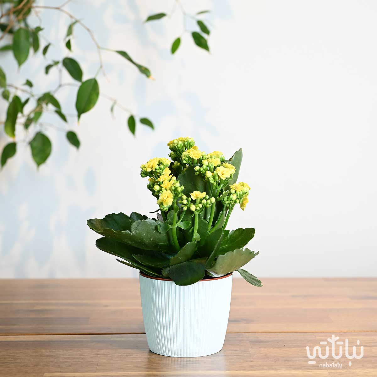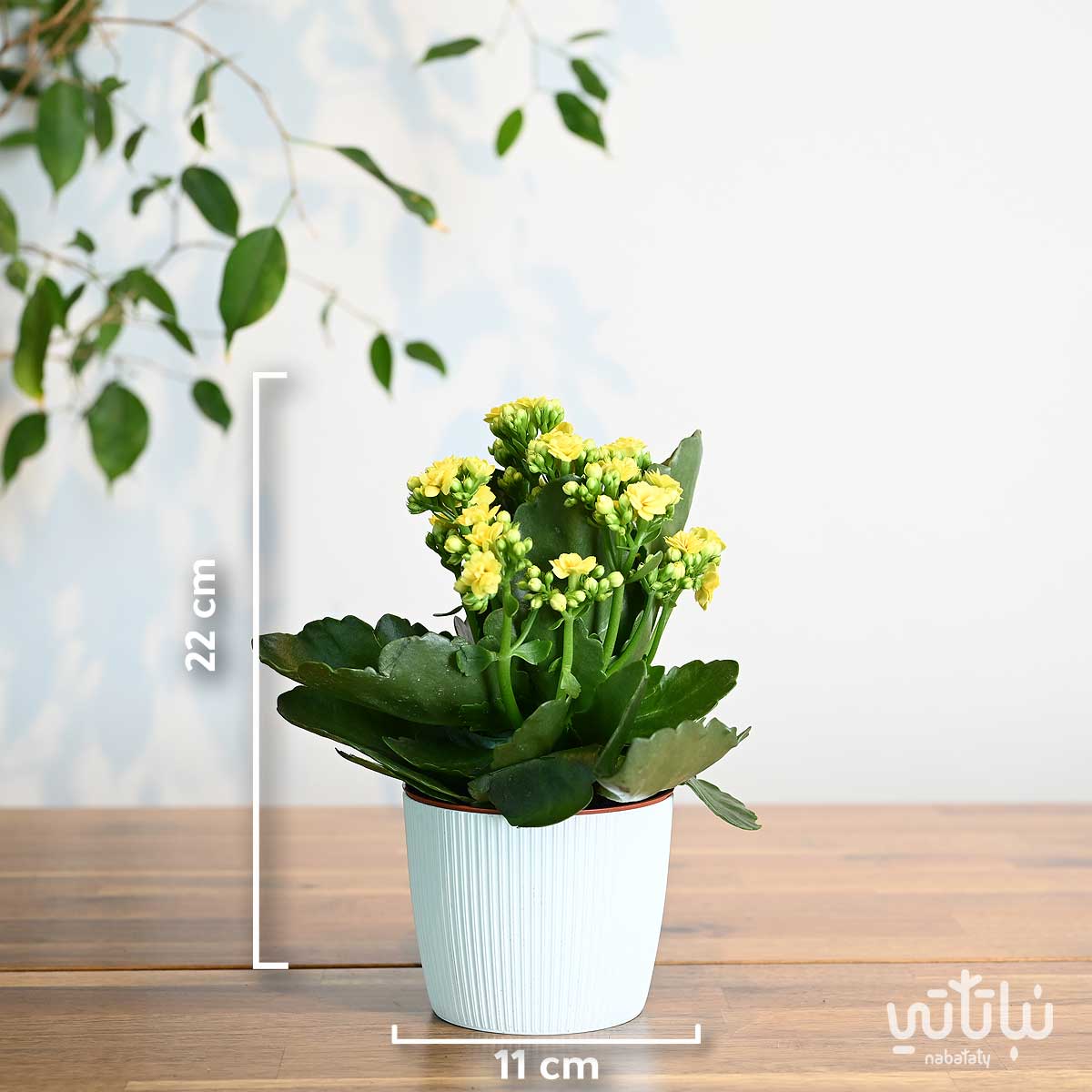 نبات الكلانشو أو الكلانكو في اصيص بلاستيك ابيض تعتبر من النباتات العصارية، كما أنها نبتة مزهرة وأزهارها طويلة العمر، وتأخذ ألواناً عدة منها الأحمر والأصفر والبرتقالي والأرجواني، يمكن وضعها في المنازل أو بيئات العمل المختلفة