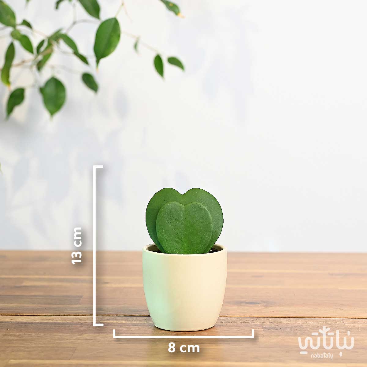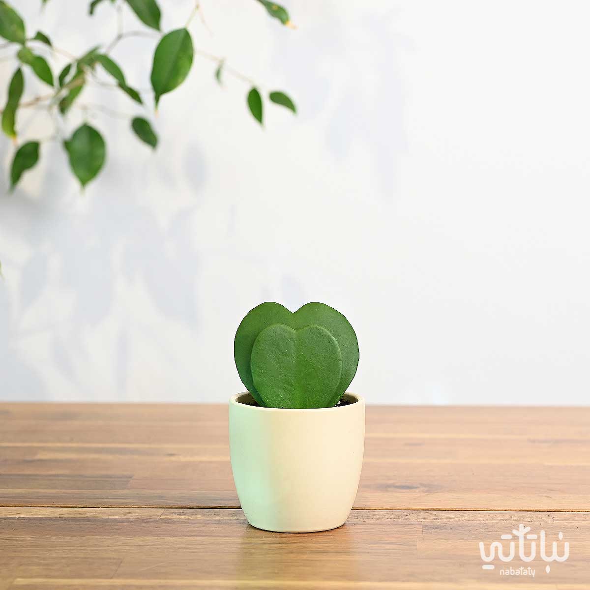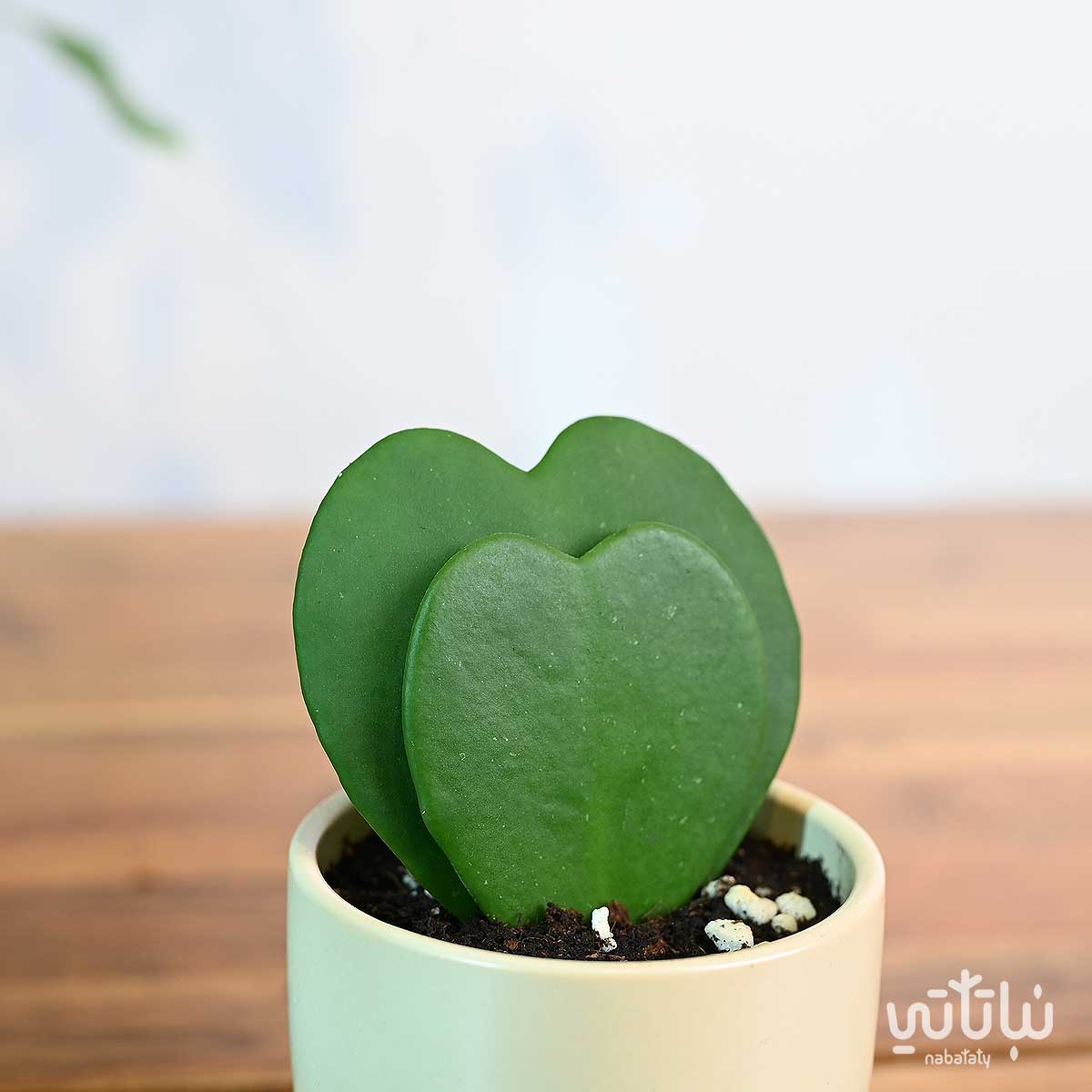 نبتة هويا قلب الحب او هويا كيري دبل في اصيص سيراميك باللون الكريمي الفاتح ، نبتة داخلية جميلة لاتحتاج للكثير من العناية مناسبة كإهداء او كتربيتها كنبتة مميزة الشكل.